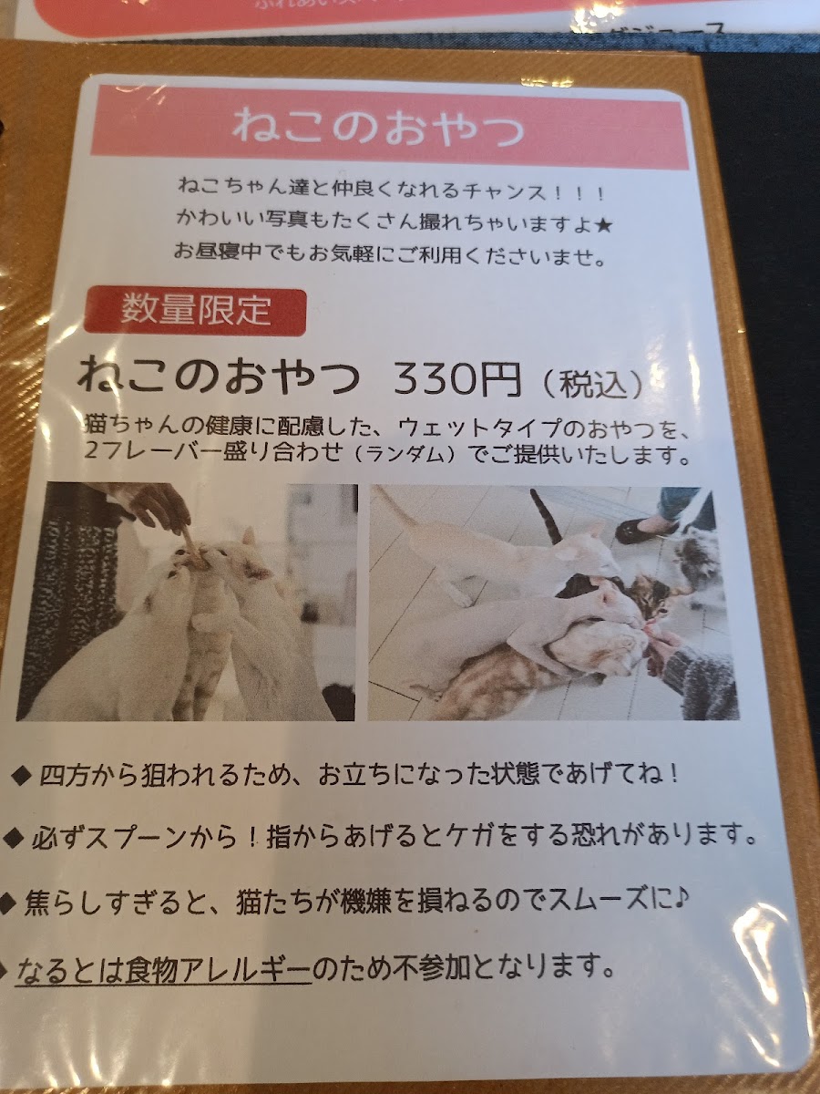 【初めての方にオススメ】猫たちは、1時間経った頃にお客様を安全で安心な方であると認識する傾向にあります。※表記は税込価格です。